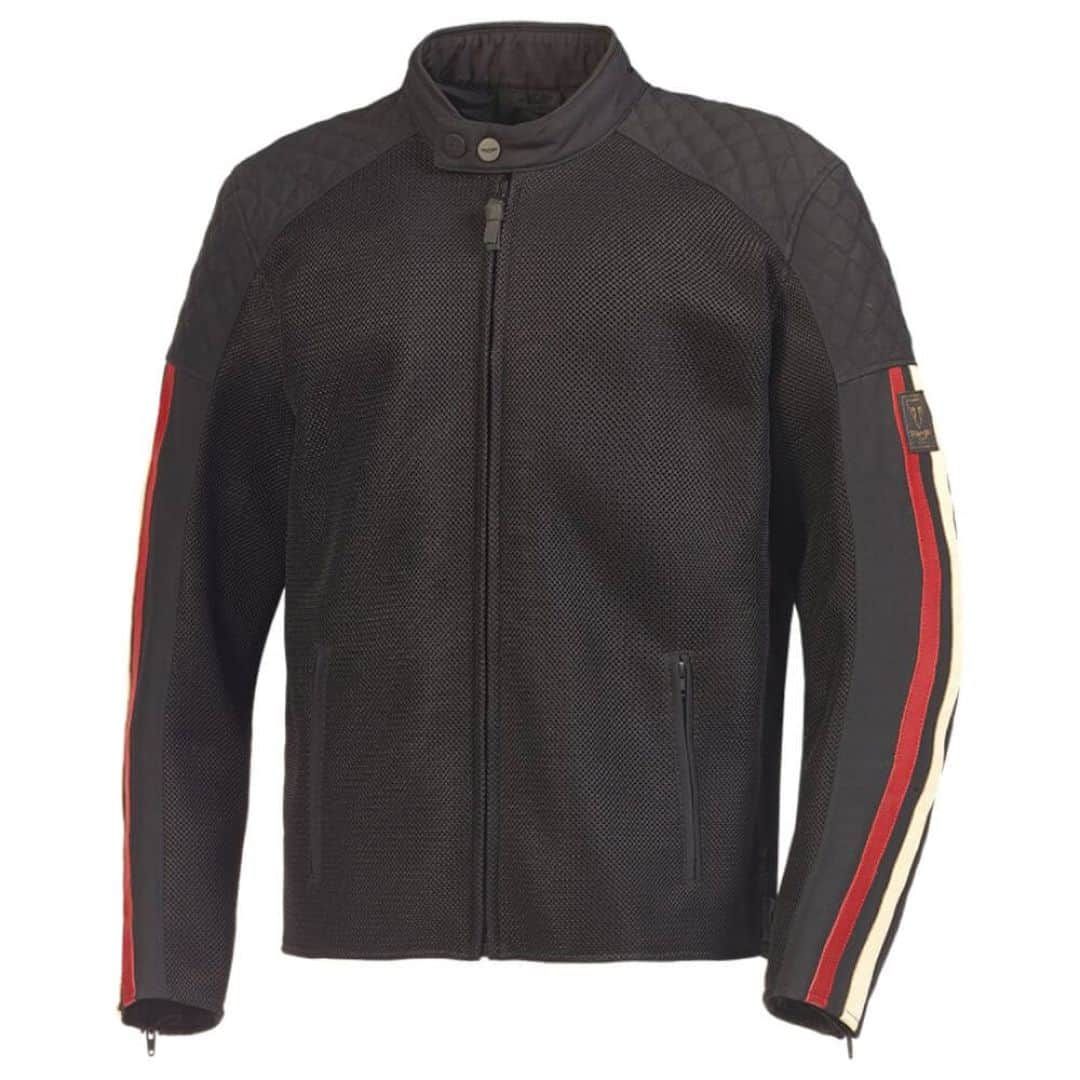 La chaqueta de moto Braddan con cuello de carreras clásico en malla de rendimiento y textil con detalles de diseño en cuero es perfecta para aquellos que buscan una prenda de vestir con estilo y funcionalidad. La malla AirFlow y el tejido de alta densidad de nylon y algodón brindan transpirabilidad y resistencia al clima, mientras que los detalles de cuero le dan un toque clásico y elegante. Las costuras acolchadas en los hombros y los apliques de cuero en la parte inferior de la espalda en color crema, combinados con las dos rayas rojas y crema en cada manga, le dan a la chaqueta un aspecto deportivo y distintivo. La chaqueta también está equipada con protectores D3O® en los codos y hombros, con la opción de agregar protección para la espalda D3O® para mayor seguridad. La chaqueta cuenta con ajuste de dobladillo para mayor comodidad y flexibilidad, mientras que las zonas de flexión elásticas agregan un ajuste personalizado. Con dos bolsillos con cremallera en la parte inferior del cuerpo, paneles acolchados en la parte superior del brazo y los hombros y detalles de logotipo en la parte inferior de la espalda en forma de aplique inverso, esta chaqueta tiene todo lo que necesitas.